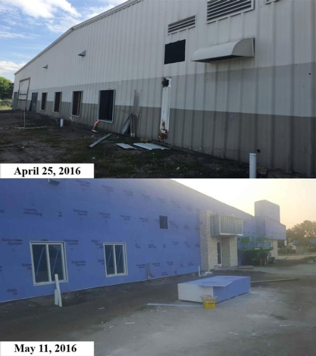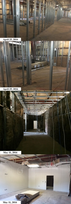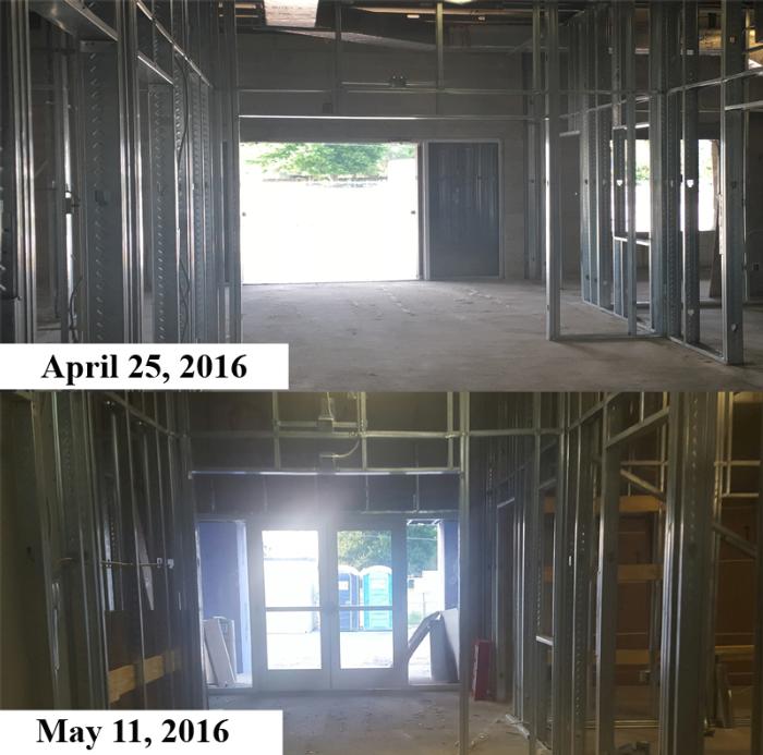 Construction crew is hard at work getting the building ready. Major progress made in just two weeks. Construction is on schedule for the opening for the 2016-2017 school year.